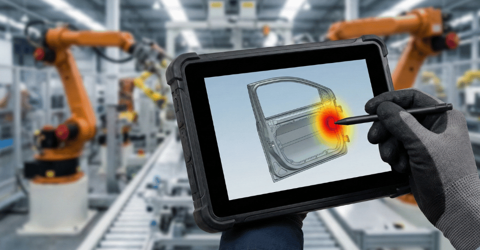 QiS’in en çarpıcı özelliği, kalite hatalarının (çizik, boya hatası, ölçü sapması vb.) operatörler tarafından tablet üzerinden doğrudan ürünün 3D CAD modeli üzerine işaretlenmesidir. Sistem, bu verileri birleştirerek ürün üzerinde hataların yoğunlaştığı bölgeleri gösteren bir “Isı Haritası” (Heat Map) oluşturur. Örneğin, bir otomobil kapısının menteşe bölgesinde sürekli boya hatası oluşuyorsa, ısı haritası bu bölgeyi kırmızı olarak işaretler. Bu görsel veri, üretim mühendislerine robot yörüngesinde veya kalıp tasarımında bir sorun olduğunu işaret eder ve kestirimci bakım aksiyonlarının alınmasını sağlar.